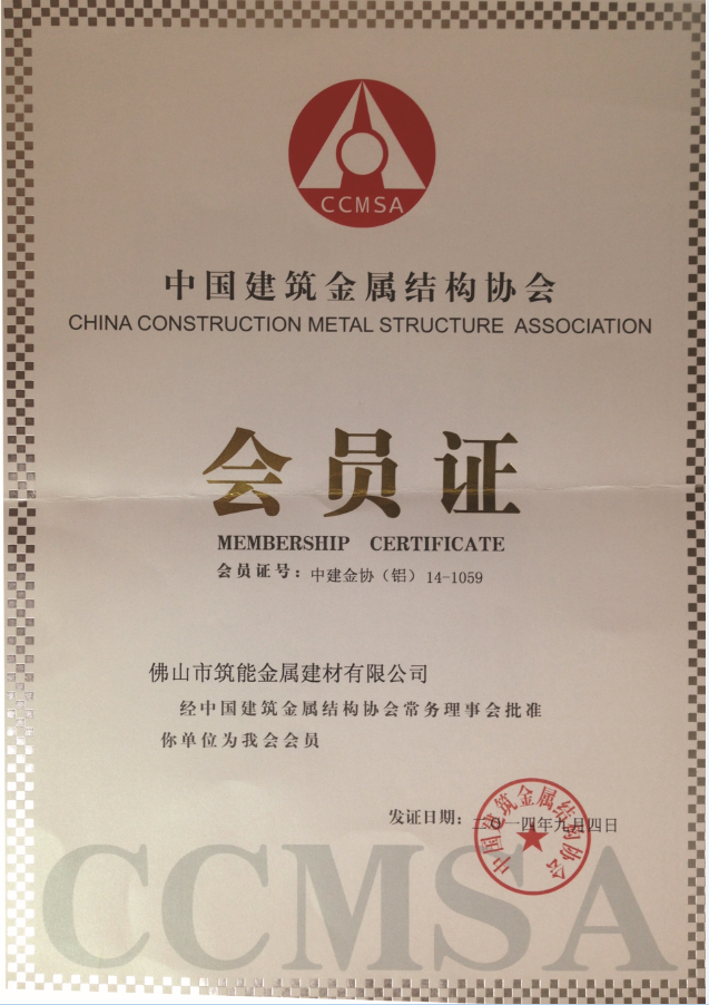 2014年9月4日佛山市筑能金属建材有限公司正式受邀成为“中国建筑金属结构协会”会员单位。