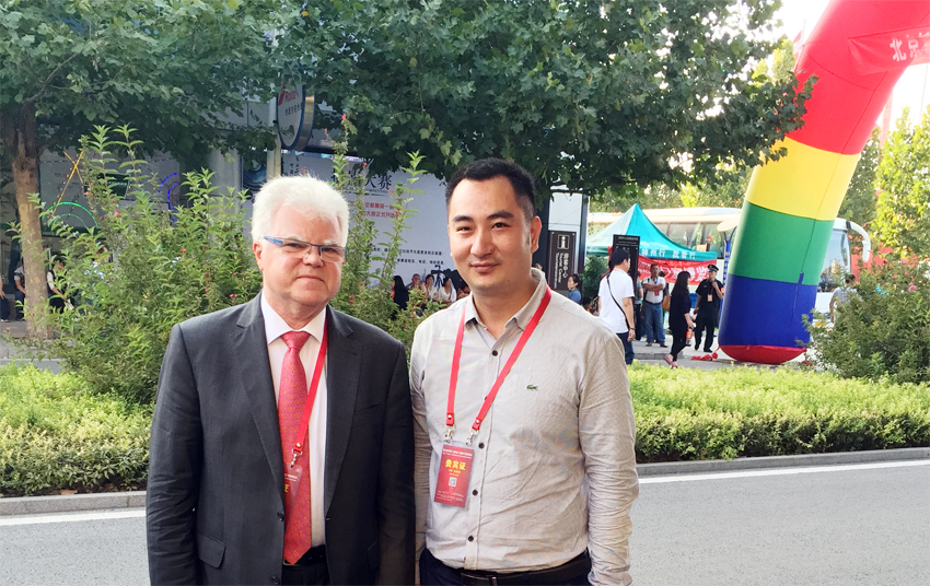 图为德国默瑟门窗品牌持有者-托马斯.默瑟总裁与福建筑能建筑科技发展有限公司苏一鹏总经理合影留念
