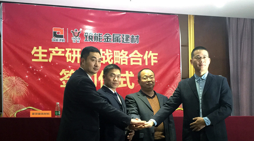 2016年2月,福建筑能建筑科技发展有限公司、佛山市筑能金属建材有限公司携手佛山市陆锋金属建材有限公司、佛山市秦正节能装饰材料有限公司、佛山市南海区豪顶装饰材料厂共同签订生产研发战略合作,建立行业联盟关系,整合资源强化合作,优势互补实现共赢,共同促进事业合作,推动行业发展,为“筑能”品牌金属建材提供强有力的技术、产品、服务、资源保障。