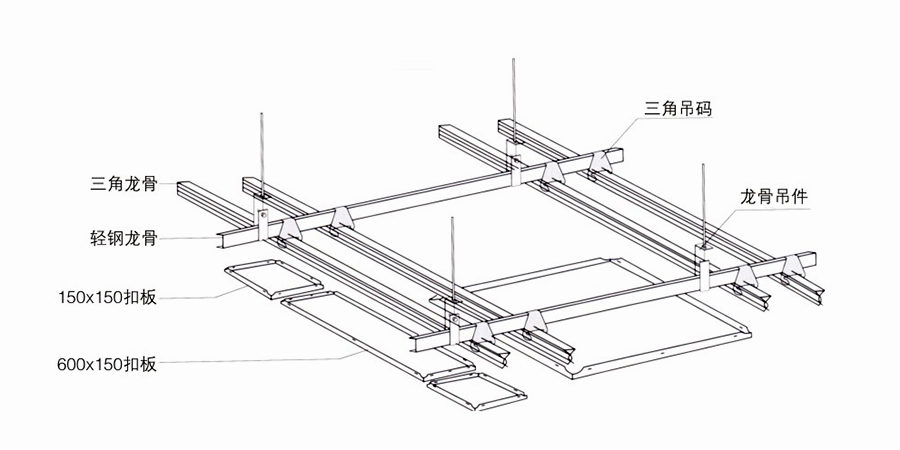 板面组合,具有极强的立体效果,充分体现铝吊顶的多变风格和工艺特点。客户可根据喜好随意组合,展现不同的风格。一般常用颜色为乳白色,如需其他颜色可参照色卡。组合天花适用于大堂、机场、地铁站、商场等场所。